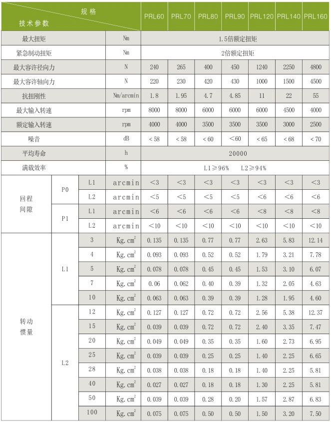 ◆PRL系列:PRL60、PRL70、PRL80、PRL90、PRL120 、PRL140、PRL160